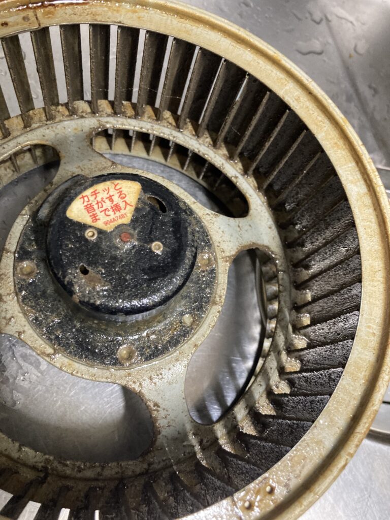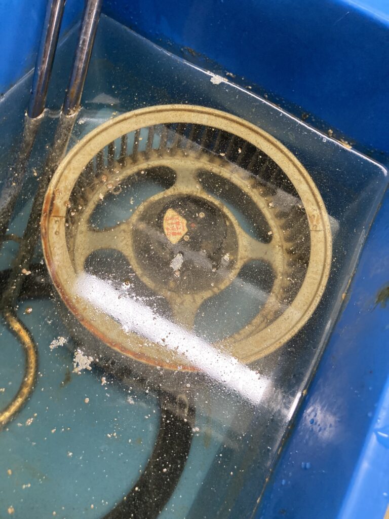 換気扇クリーニングで分解した部品は、蓄積した油汚れが多い場合、