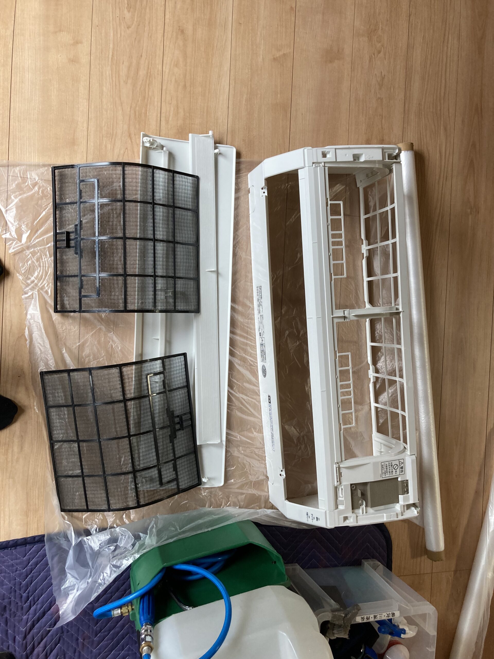 比較的、アルミフィン部分・送風口部分ともにホコリは少なめですね。